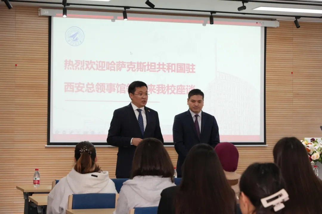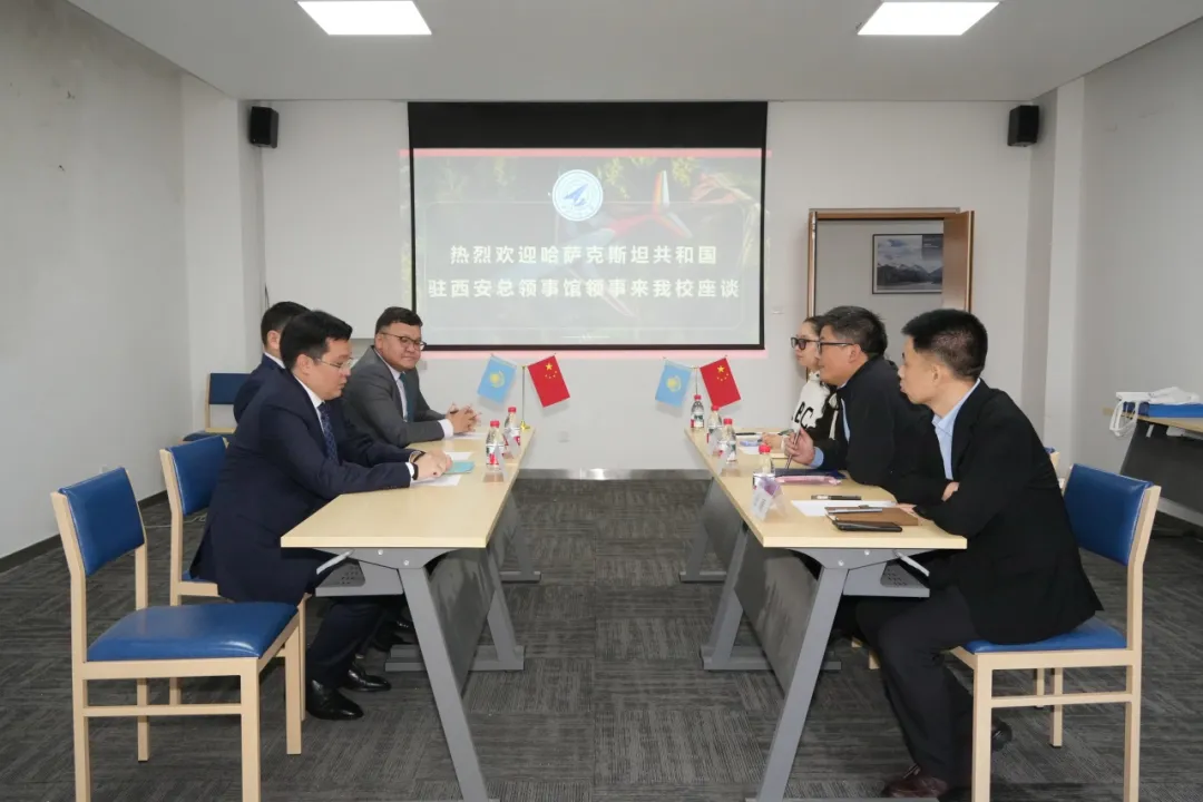 2025年10月15日,哈萨克斯坦共和国驻西安总领事馆领事萨金德克夫·叶达和伊布拉基莫夫·贝里克一行来校看望哈萨克斯坦留学生。