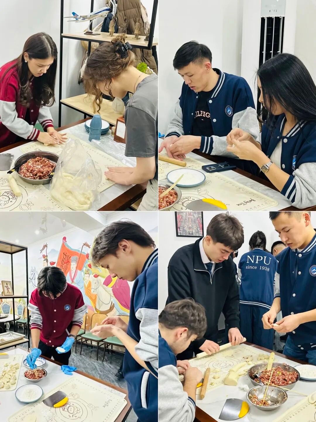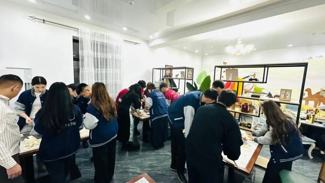 老师们穿梭于各小组之间,时而亲手示范、时而幽默鼓励,不同文化在这里交流互动,现场气氛温馨而活跃。同学们在互相协作下技艺逐渐熟练、创意层出不穷,面团与馅料在手中幻化出元宝形、月牙形、麦穗形等,宛如一件件精美的艺术品。
